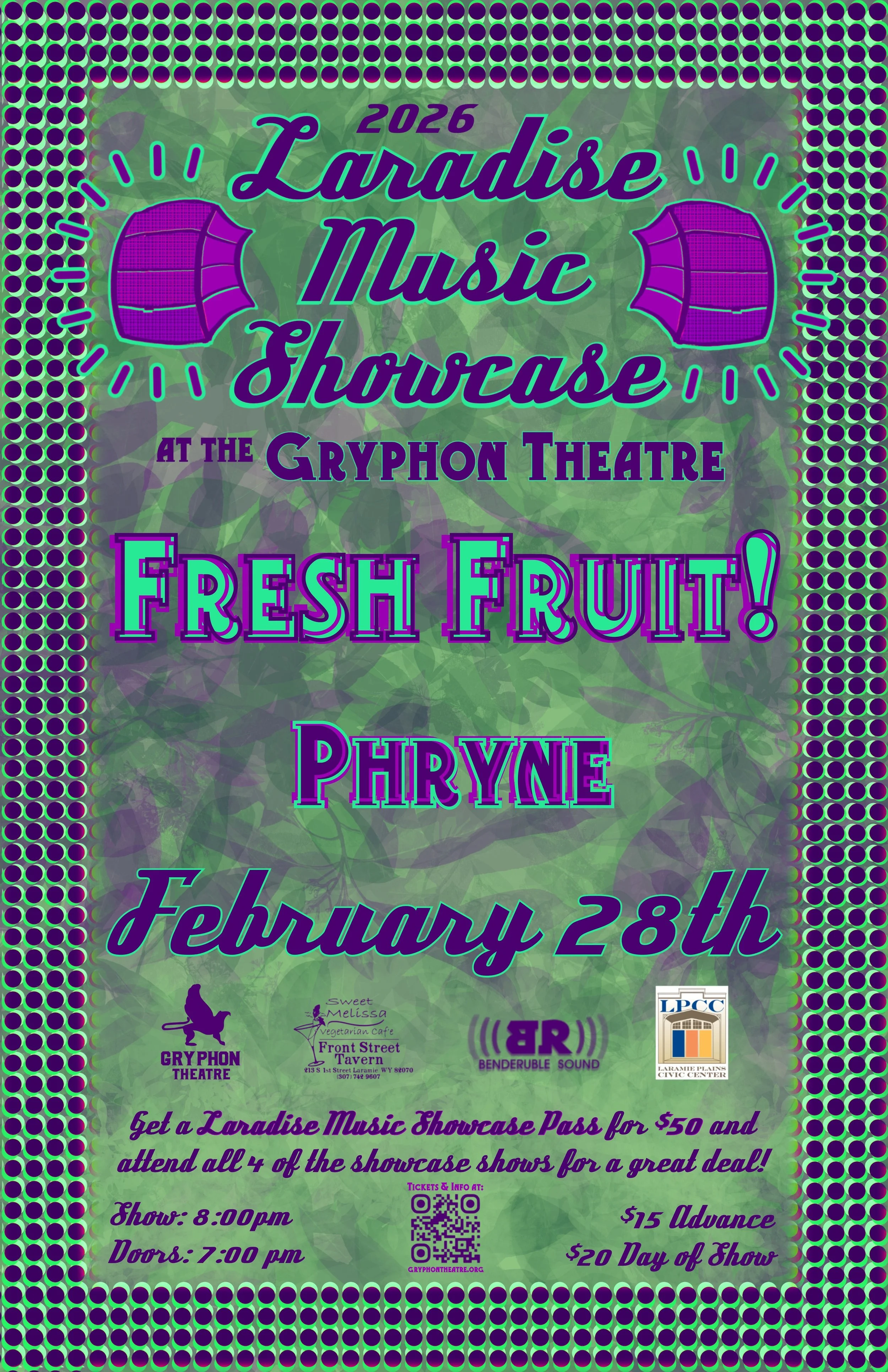 Laramie’s own, Phryne, will be opening up the night for Fresh Fruit! to finish the final installment of the Laradise Music Showcase.